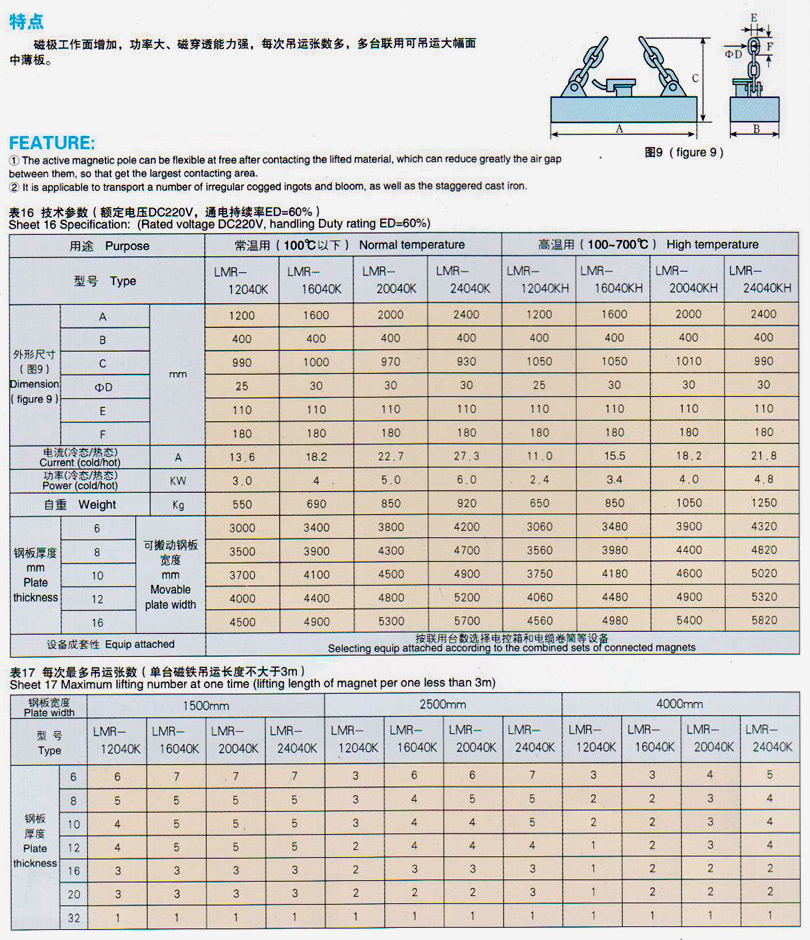 LMR-K(40型)系列吊運多數鋼板用矩形起重電磁鐵