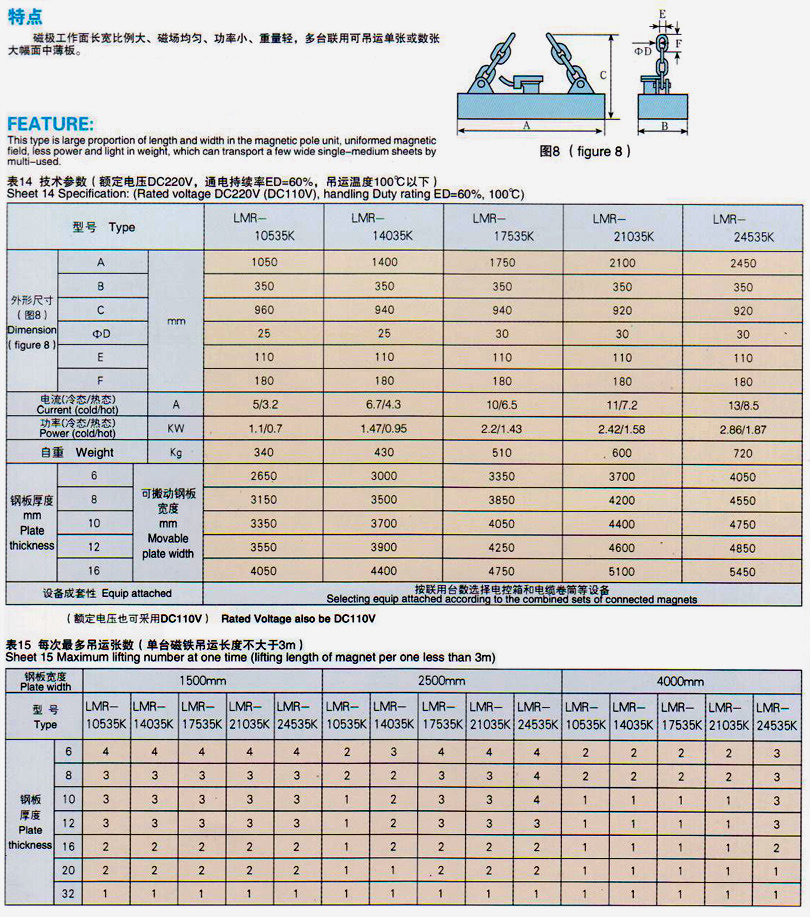 LMR-K(35型)系列吊運少數(shù)鋼板用矩形起重電磁鐵
